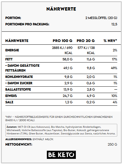 Matcha Latte (MCT C8 Öl & Kollagen & Ghee) – Frische Himbeere 250g